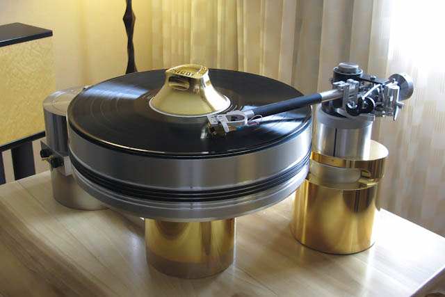 The Onedof Gramophone turntable ($150,000 without tonearm). The tonearm is a Triplanar. Obviously a labor of love by Aleks Bakman, aerospace engineer.
