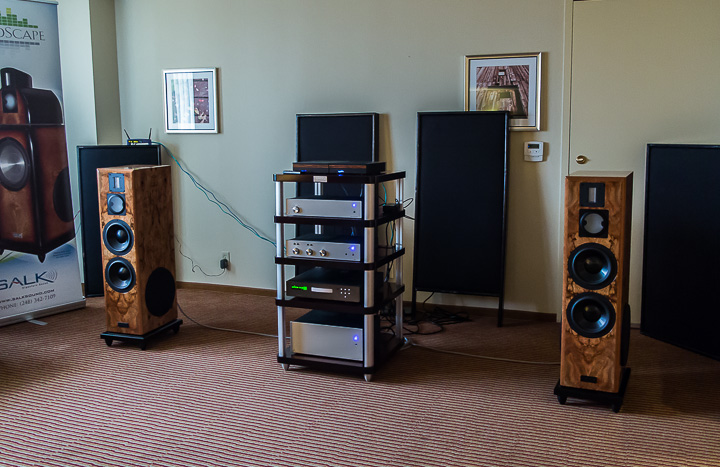 At one end of the room, Salk Signature Sound demoed its Soundscape 8 loudspeakers ($8000) along with a rack full of Audio by Van Alstine (AVA) components, whose chassis have been updated from their usual utilitarian black to a luxurious silver finish bringing them into the 21st century.